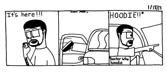 And here it is. I was at work when I checked the status on my hoodie. I actually said hoodie several times as I drove home. But it's awesome dispite it being not as thick as my previous hoodie and not Tardis blue.