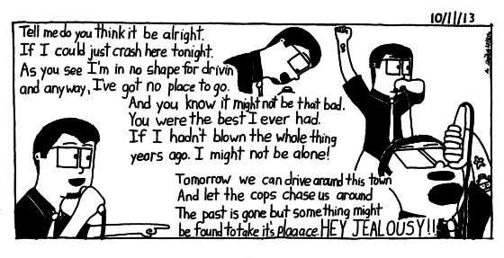 "And you can trust me not to think. And not to sleep around. If you don't expect too much from me. You might not be let down. Cause all I really want is to be with you. Feeling like I matter too. If I hadn't blown the whole thing years ago. I might be here with you." (Hey Jealousy, Gin Blossoms)