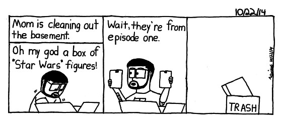 She's getting ready for a flea market and she found a big box of Episode 1 figures and 1996 release figures. So off to the flea market they go.