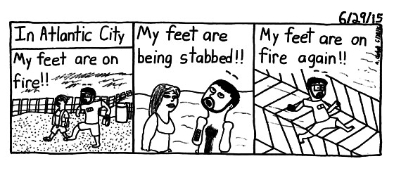 Sand was not surprising but the boardwalk was. Never thought it was so hot. Also in certain places in the water there were many sharp and hurtful rocks and shells.
