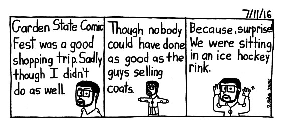 Welcome new readers! Garden State Comic Fest in the bag. It was freezing due to them just covering the ice and putting all the vendors on top. On the plus side if you follow my instagram you saw me sport a new hoodie.