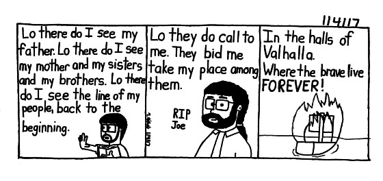 My Nephew Joe passed away. It was unexpected. He was a funny, straight forward guy. He wished to have a viking funeral. Unfortunately there was no way we could pull that off in real life, so I thought I'd give him one here. Rest in peace Joe.