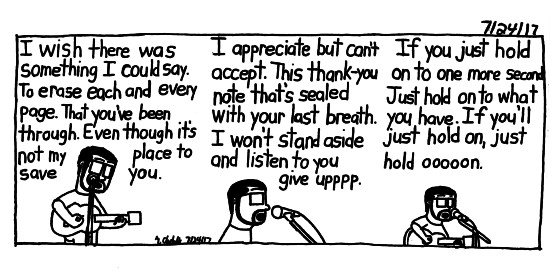 "These arms remain stretched out to you. Maybe someday you'll accept them. Or maybe its too late to save a young girls heart that's long stopped beating." (My Reply, The Ataris)