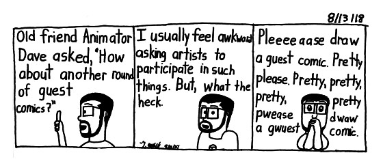 After that question I thought, yea. Let's open up the lines to have guest comics. Why not? At best I'll get a few days off haha. So if you would like to participate contact me on the various social media platforms of Facebook Tumblr Twitter Instgram LiveJournal Blogger or even email me at timaichele@gmail.com. I'll leave the submission open for the rest of august!