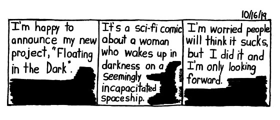 So the project I've been secretly working on(secretive in the sense that I didn't ask anyone for feedback) is here! I'm doing something a little different with this comic though. Which is, that I'm only releasing it in paper form. My last comic was just digital so I figured let's try paper now. I also only have an Instagram for it(@floatinginthedark). I'm gonna be debuting the comic at Baltimore Comic Con this weekend. But if you want a copy of your own, just shoot me an email at Timaichele@gmail.com and I'll hook you up. Let's see how this goes.