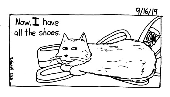 He lays around the shoe pile a lot.
