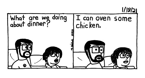 I call the frozen ready made chicken oven chicken cause I cook it in the oven. Abigail is not really a fan haha