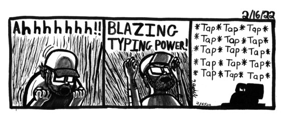 I feel like my typing speed has increased over the years because of my job. Also recently I've gotten into One Punch Man.