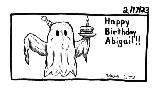 It's Abigail's Birthday. And to celebrate her new Instagram where she draws ghosts. Visit her Instagram profile ghosts.semiweekly.