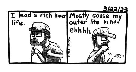 Was thinking how I use to be more slice of life comic, but these days it's more of an inner monologue.