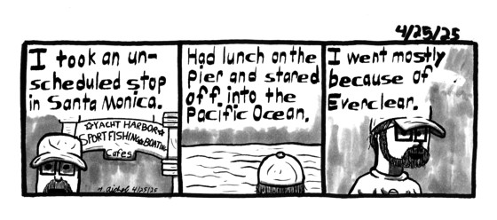 It was a quick stop on my journey to San Diego. I didn't swim past the breakers, but I feel we are watching the world die.