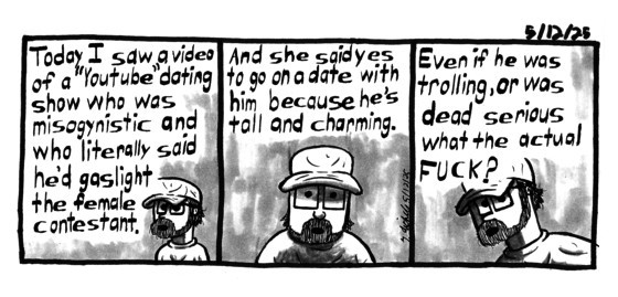 I originally saw a reaction to the video by Emma Thorne, you can see the original here. My jaw dropped when she said yes to a date. A lot of people said he was trolling and playing a part. But he said stuff very seriously that was completely idiotic. Still he got a date. Are you fucking kidding me?